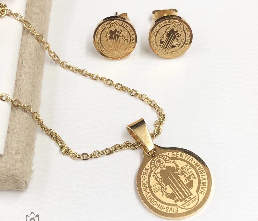 📿 Juego de Collar y topitos San Benito ✝️