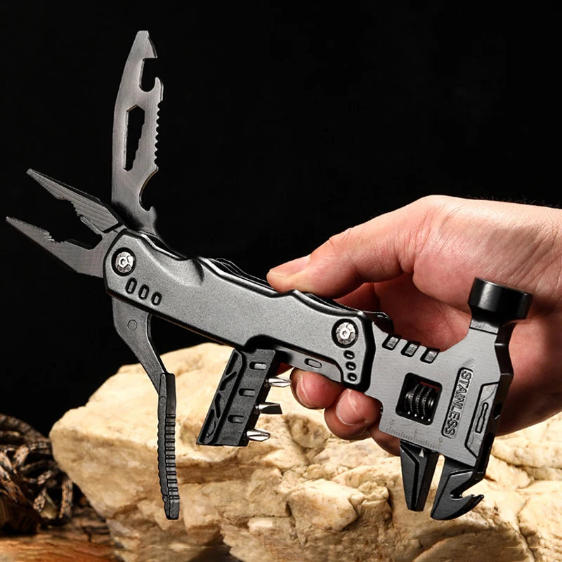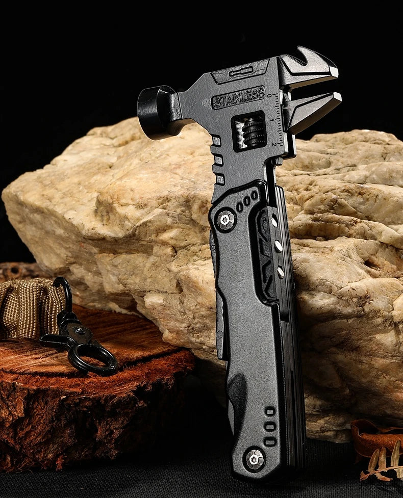Imagina tener martillo, cuchillo, linterna, destornillador y más en un solo dispositivo compacto que cabe en tu mochila, auto o guantera.
