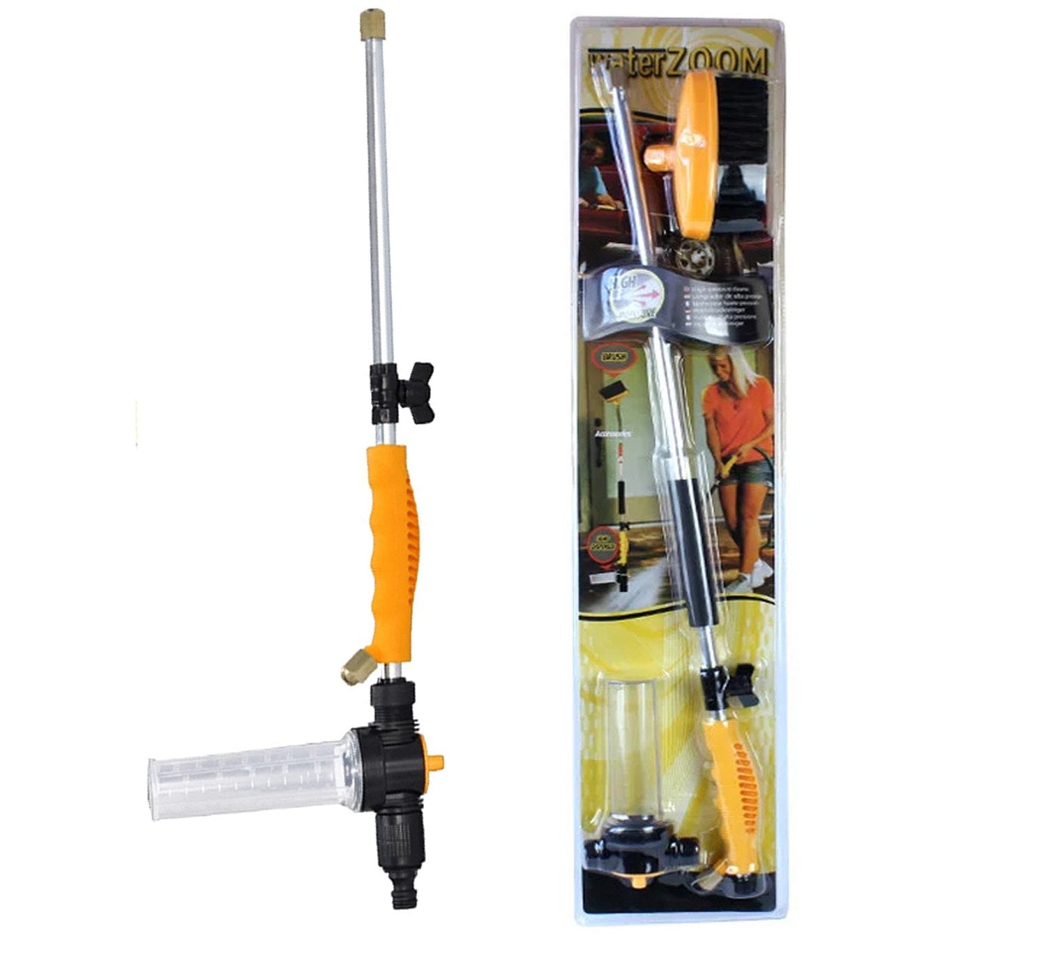 Water Zoom Limpieza Alta Presion Agua Hidrolavadora Manguera. Manguera accesorio que convierte cualquier manguera de jardín en la herramienta perfecta limpieza de alta presión. Este producto es ideal para las personas que tengan jardines o cocheras y bien que habitan casas con techos muy altos. Es ideal para las personas que tengan camiones o trasporte pesado pues con WaterZoom la limpieza será más fácil pues con el más mínimo esfuerzo limpia a profundidad con ayuda del cepillo contando con un dispensador de jabón.